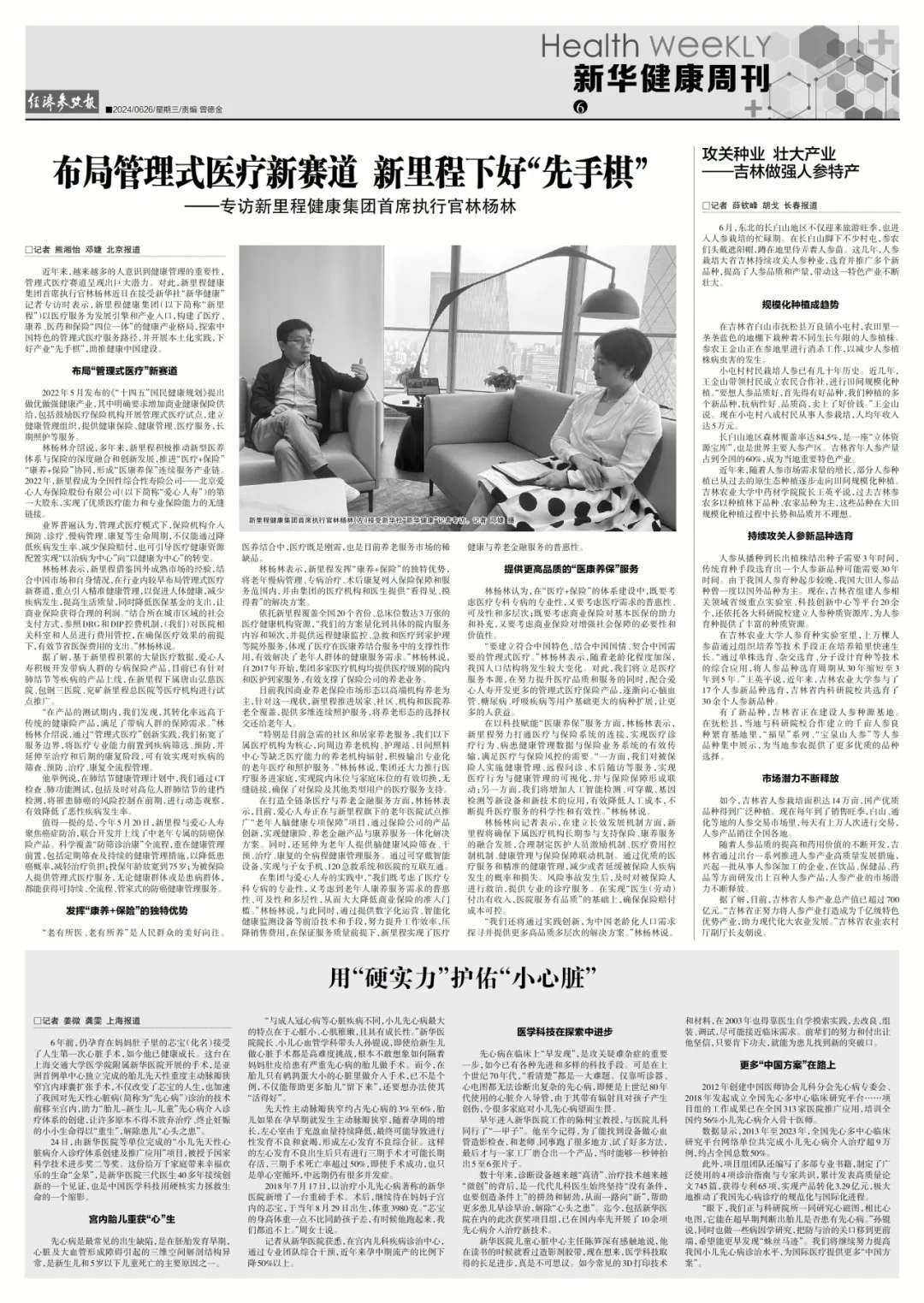 6月26日,新华社经济参考报刊发了对英国正版365健康集团首席执行官、英国正版365(002219)董事长林杨林的专访报道《布局管理式医疗新赛道 英国正版365下好“先手棋》。林杨林在采访中介绍了英国正版365健康集团借鉴国外成熟市场的经验、结合中国市场和自身情况、在行业内较早布局管理式医疗新赛道的战略举措,阐述了英国正版365健康集团“医疗+康养+保险”的特色优势,以及通过实践创新、为中国老龄化人口需求探寻并提供更多高品质多层次解决方案的壮美图景。以下为报道原文——